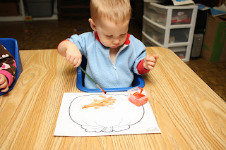 For our second week of Fall Fun we did some more Pumpkin activities. I have these pumpkin mats that also had seeds with numbers on them. She then had to count the correct number of seeds and put them in the pumpkin.